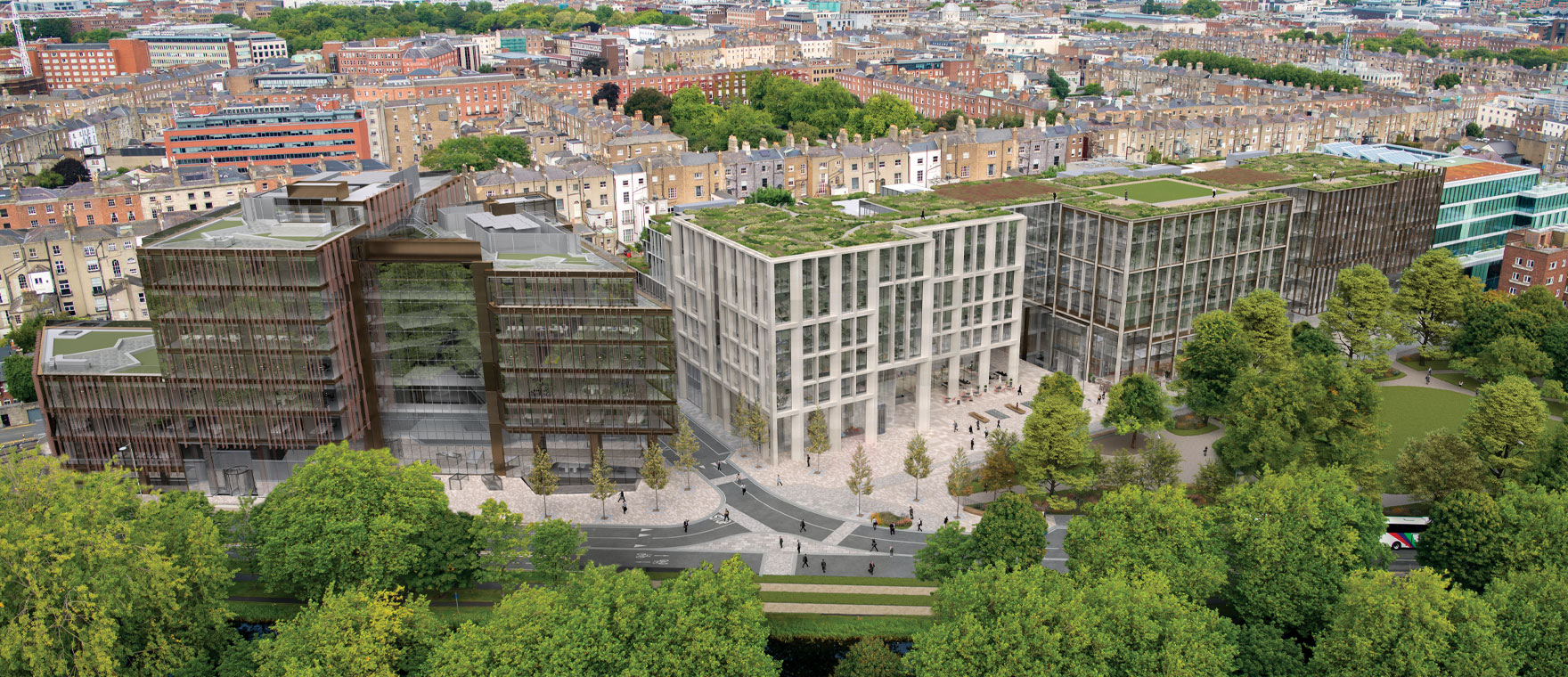 The Wilton Park development has been designed to meet the highest sustainability, efficiency and digital connectivity standards including: LEED Platinum, WiredScore Platinum, WELL Gold and a BER A3 Energy rating. The new buildings will achieve energy consumption savings of 70% and water usage savings of 60% compared with those of the existing buildings. A minimum of 95% of construction and demolition waste will be diverted from landfill.