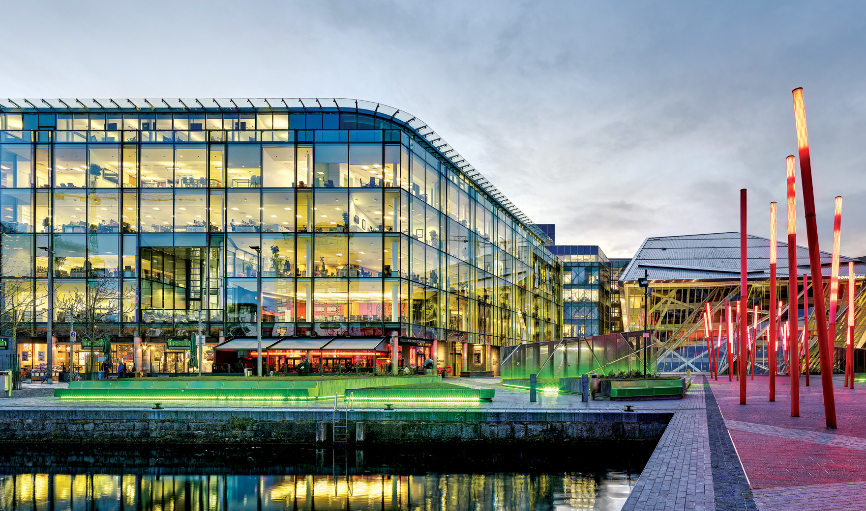 Studio, 2nd Floor at One Grand Canal Square offers a unique self-contained HQ floor of scale. The floor has been designed and delivered to facilitate flexible work with a mix of options for team collaboration and individual focus.With panoramic views over the Grand Canal Dock and excellent levels of natural daylight penetrating through the external facade and the central atrium. This floor is let to Procorre.