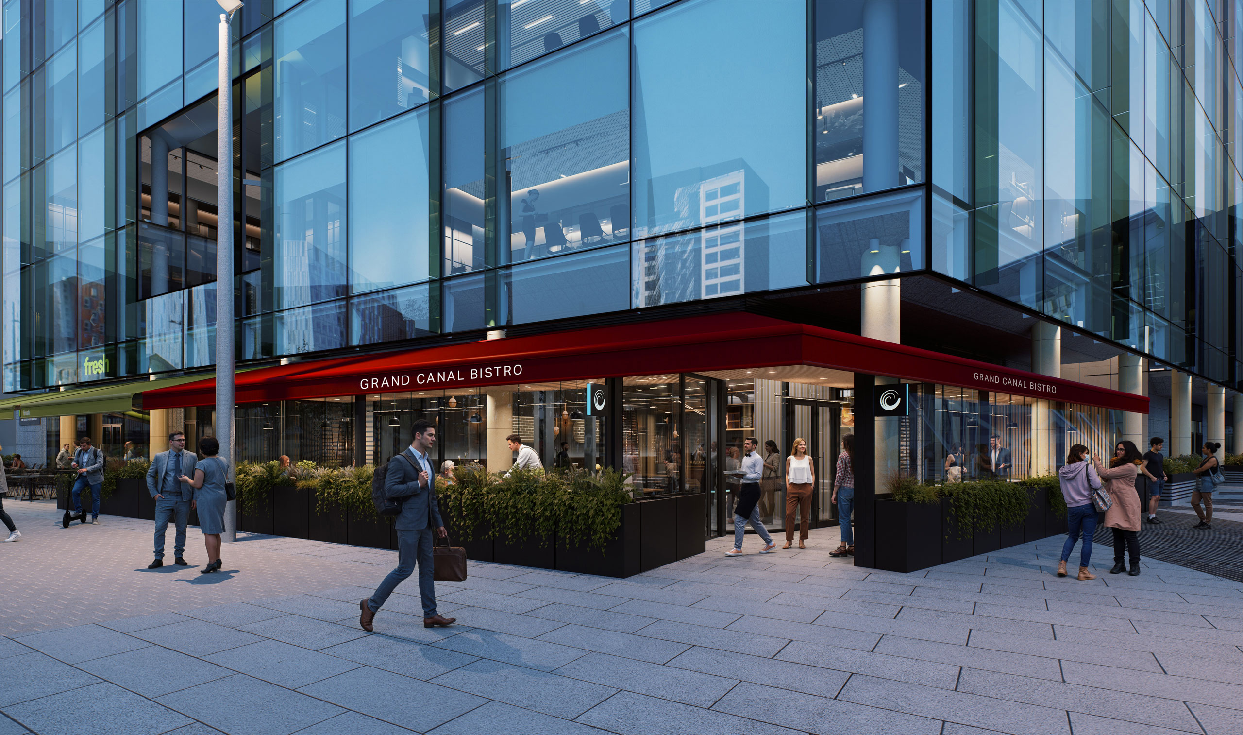 A prominent waterfront restaurant with outdoor seating in one of Dublin’s busiest cultural neighbourhoods, One Grand Canal Square offers 2,800 sq ft of reimagined space to create your vision.