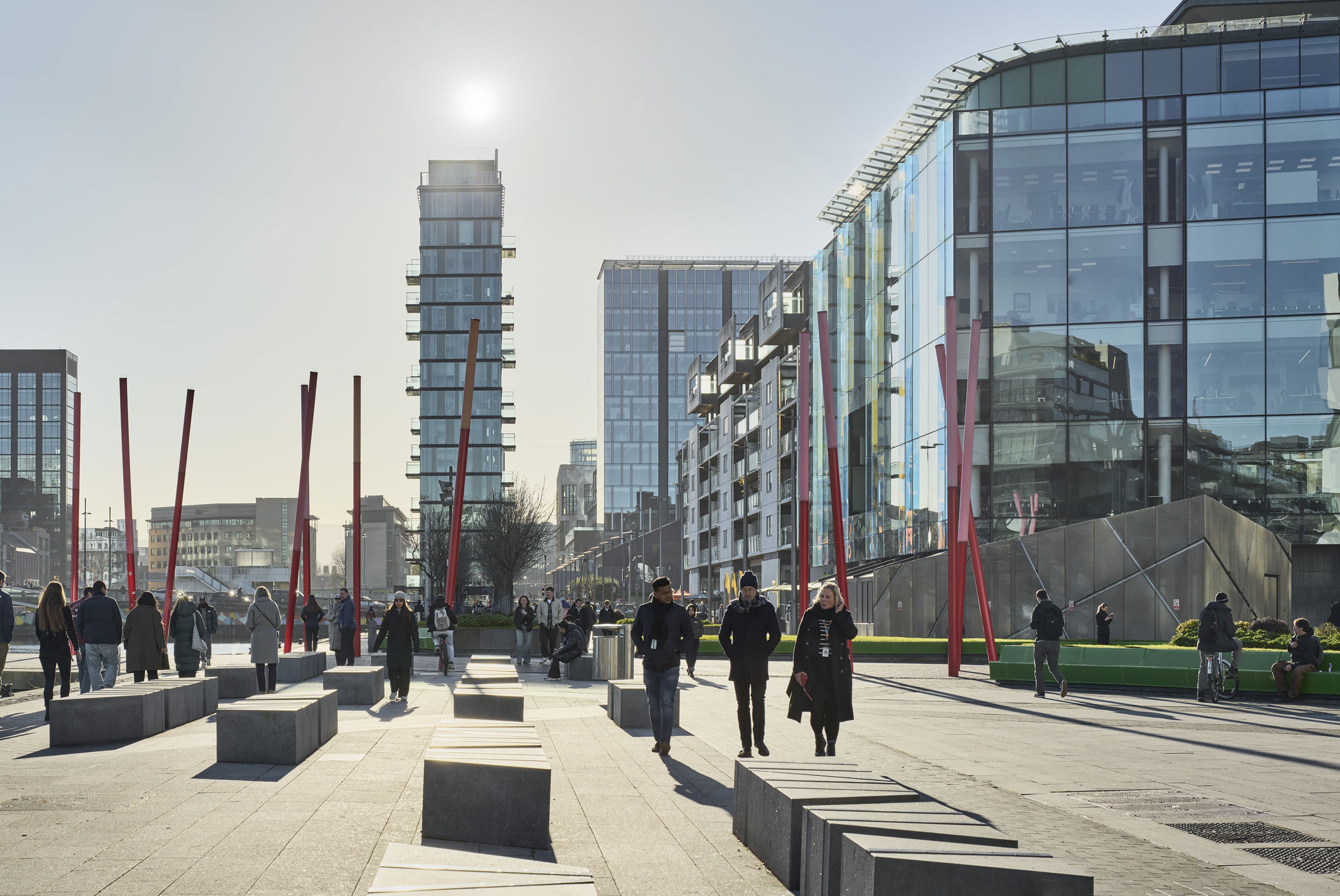Set within a dynamic neighbourhood with a captive audience, One Grand Canal Square offers a light-filled waterfront address with outdoor seating. A show-stopping space surrounded by apartments, offices, hotels and retail, and exceptionally well connected by DART, Luas, bus and car. One Grand Canal Square is ready to step into the spotlight.